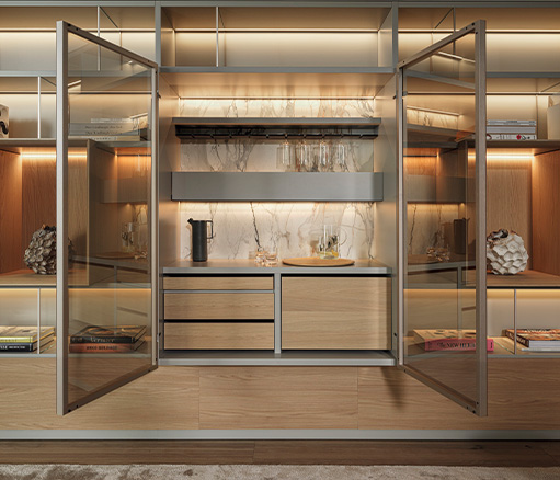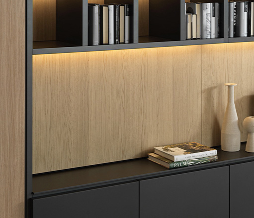 505 UP 系统可选配卡拉卡塔维纳维奇亚纹理陶瓷,随着时间的推移,这种材料越来越受到人们的关注。这种陶瓷最初是在哈利酒吧模块中使用,厚度为 4 毫米,既耐用又美观。它与作为支撑的三聚氰胺面板完美融合,505 系统的所有背板以及展示模块背板都采用了这种材料