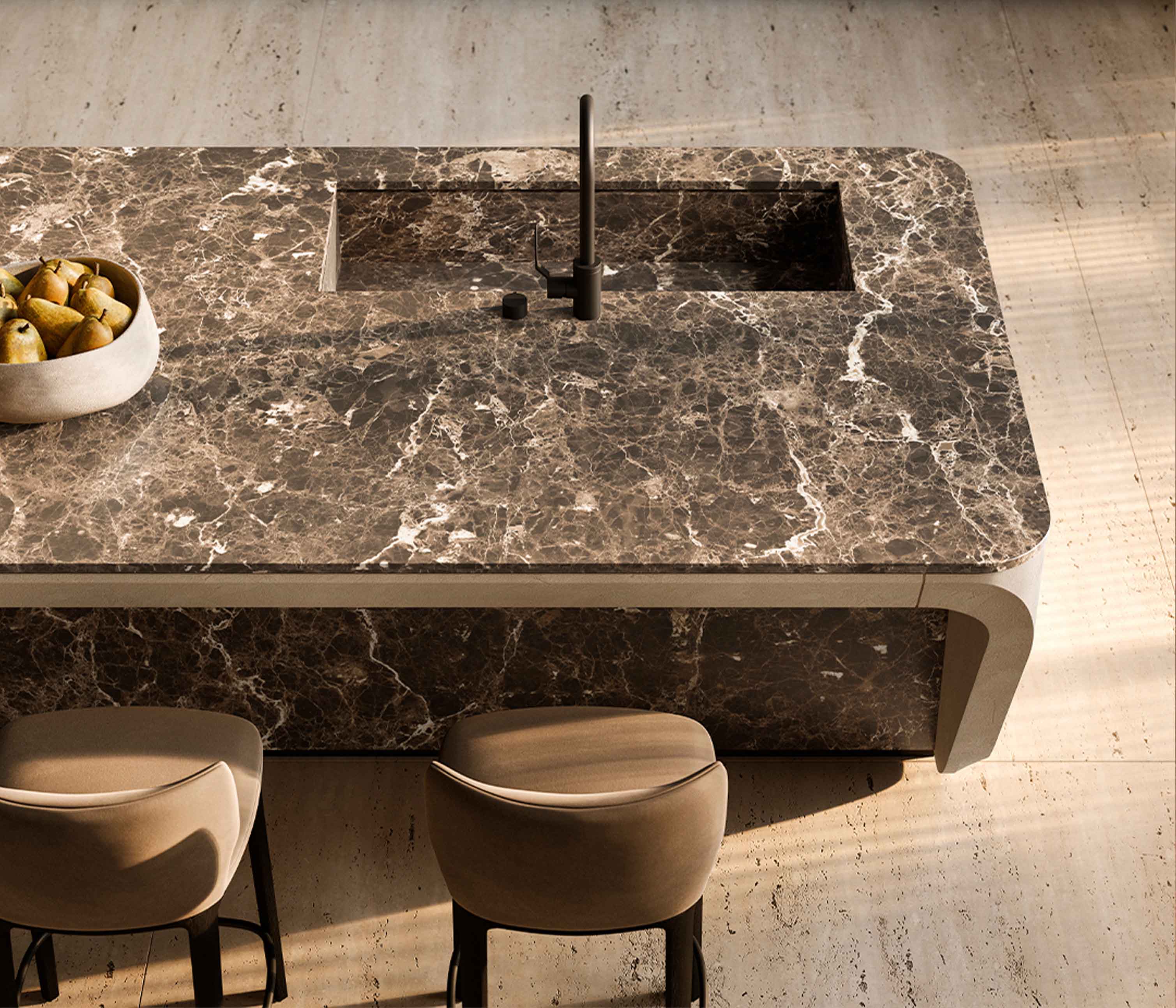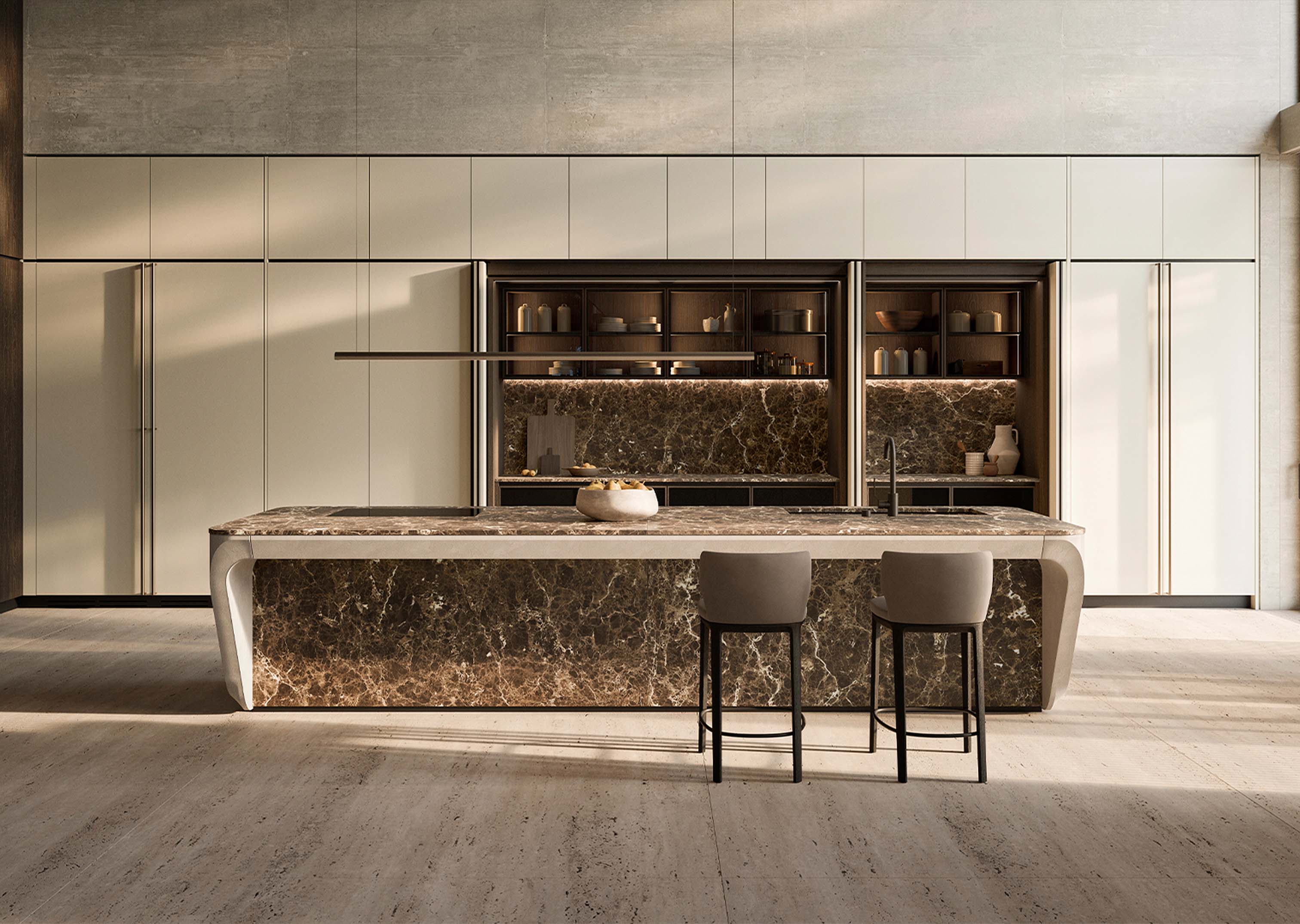 COVE厨房充分体现了独特建筑美学,以蜿蜒和动感的形式定义创新与传统的完美融合,这一标志性设计与创新和技术专长完美融合,使厨房融合了雕塑般的优雅和先进的功能,带来精致、毫不妥协的用户体验。