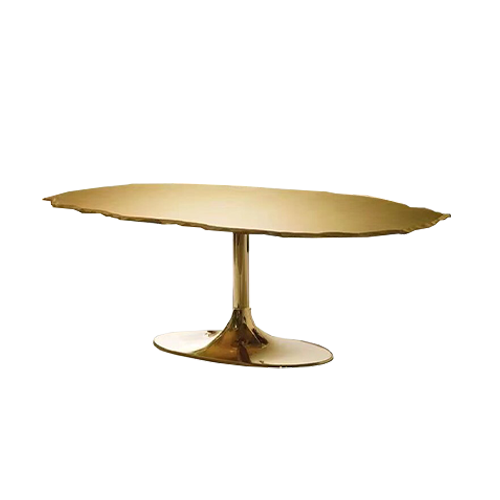 大理石桌面,摩卡橡木框架,金棕色艺术漆金属脚