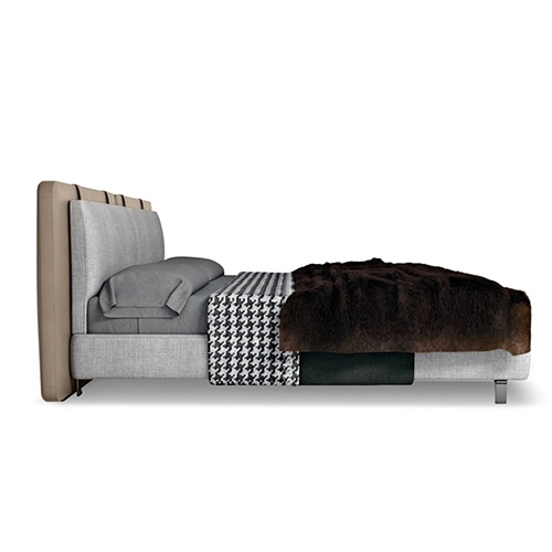 靠背硬皮固定颜色,皮板色号LZ-PAN-10,床头靠包+床帮材质可选布、皮、超纤皮,床腿镜面枪黑金属腿,含排骨架