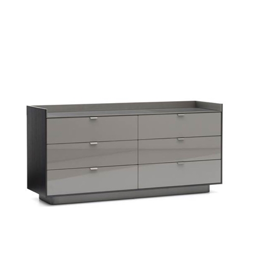 摩卡橡木侧板,大象灰烤漆抽屉,哑光拉丝枪黑面板及腿