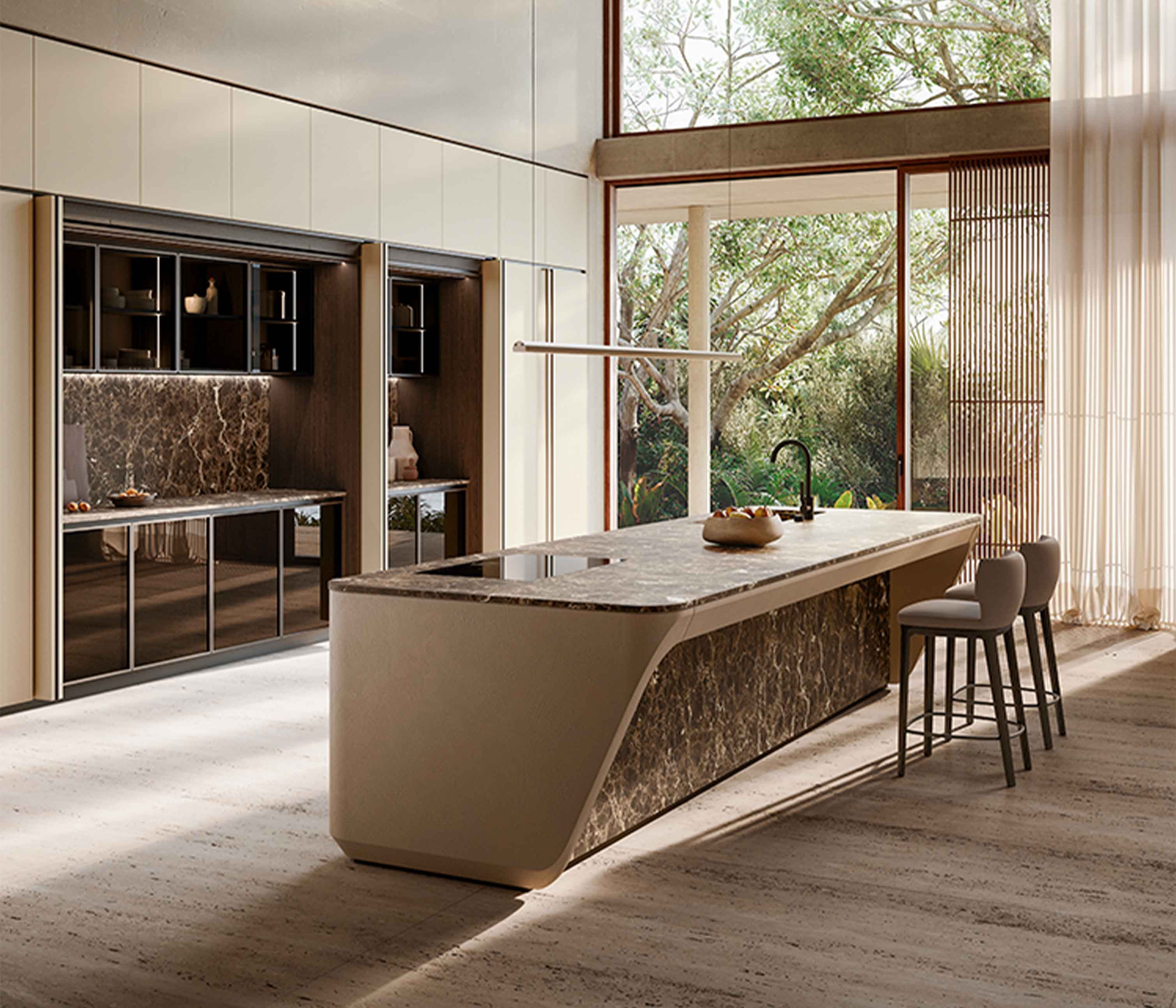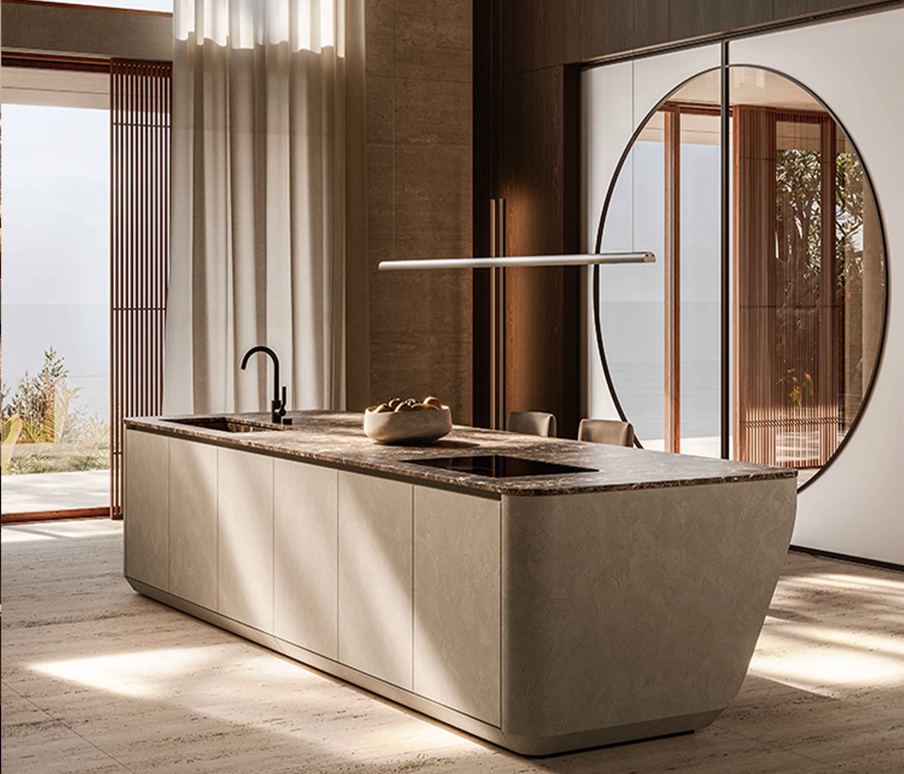 COVE厨房充分体现了独特建筑美学,以蜿蜒和动感的形式定义创新与传统的完美融合,这一标志性设计与创新和技术专长完美融合,使厨房融合了雕塑般的优雅和先进的功能,带来精致、毫不妥协的用户体验。
