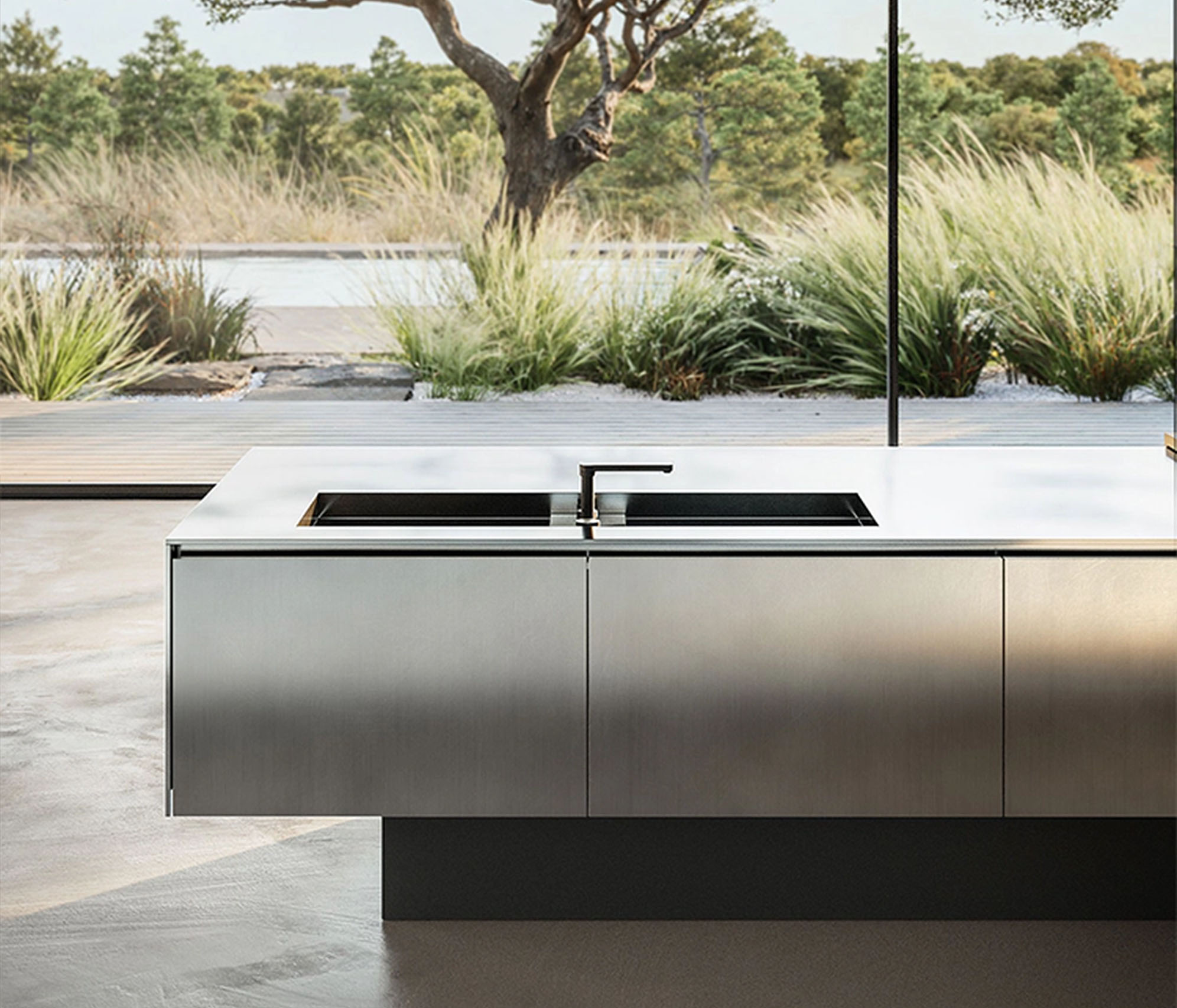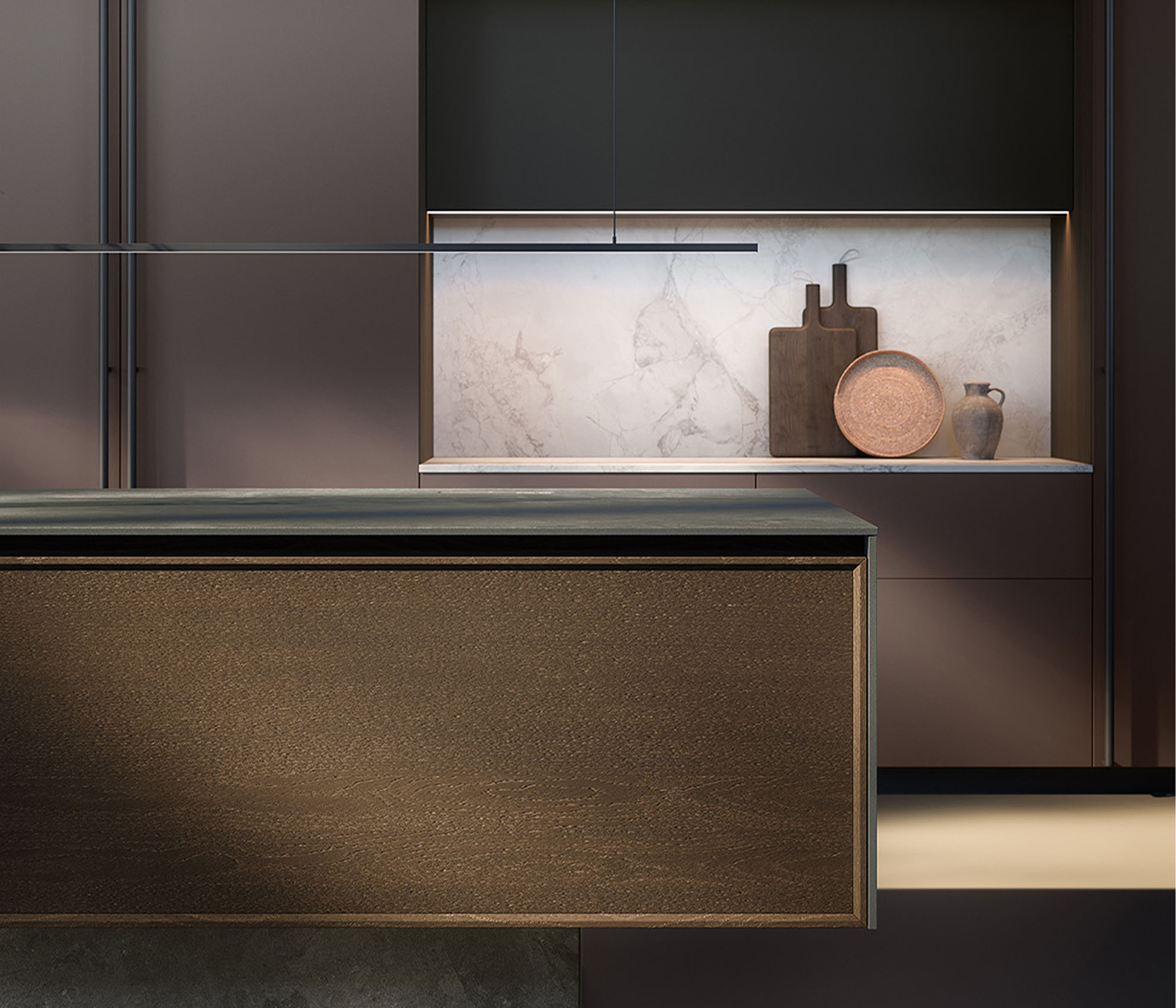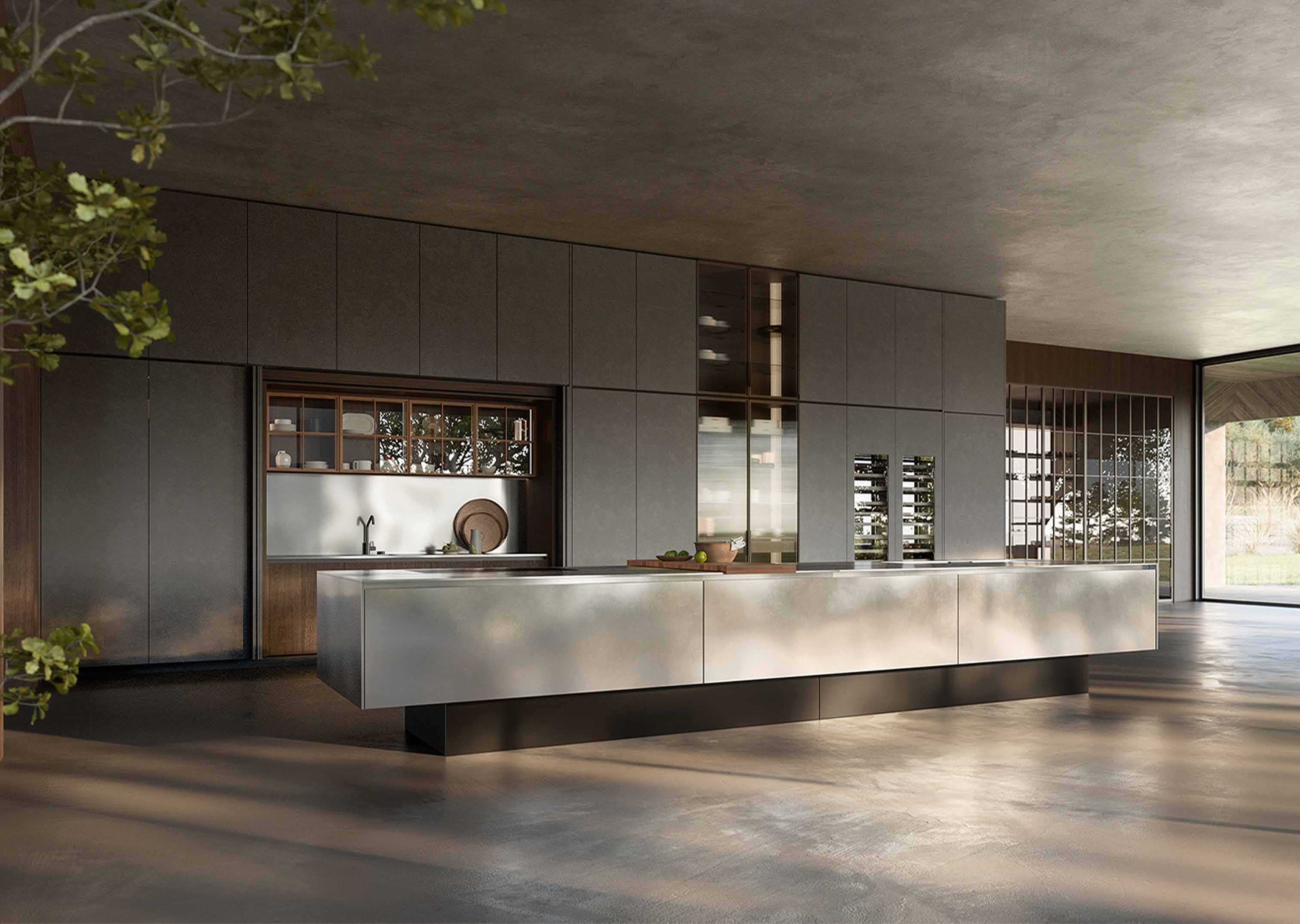 嵌入式底座作为带有饰面板的底座单元的支撑,营造出整个单元悬浮于地面之上的错觉。从MDi到不锈钢等触感材料覆盖了300毫米的基座、顶部和侧面,完美地展示了博菲的工业设计研究如何引领新型建筑和材料提案。"Novanta是一款极具建筑风格的厨房,设计规模与众不同,几乎就像一座悬浮建筑。它由水平元素(人们在上面工作的岛屿)和垂直封闭元素组成,就像一座城市在水平和垂直方向上发展。这样,我们就离开了设计产品的世界,进入了建筑产品的世界"